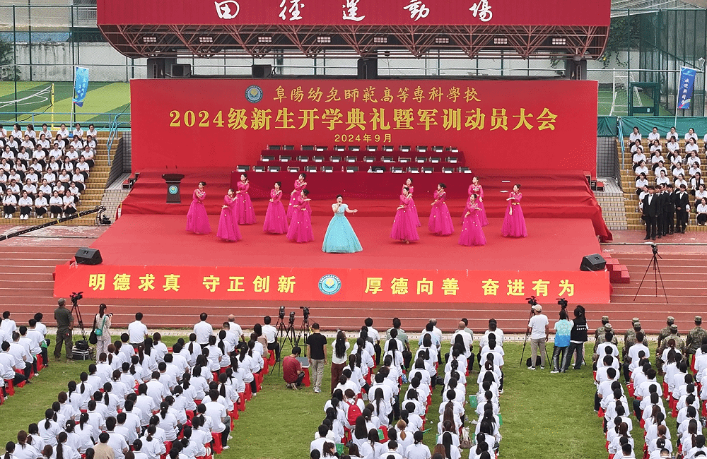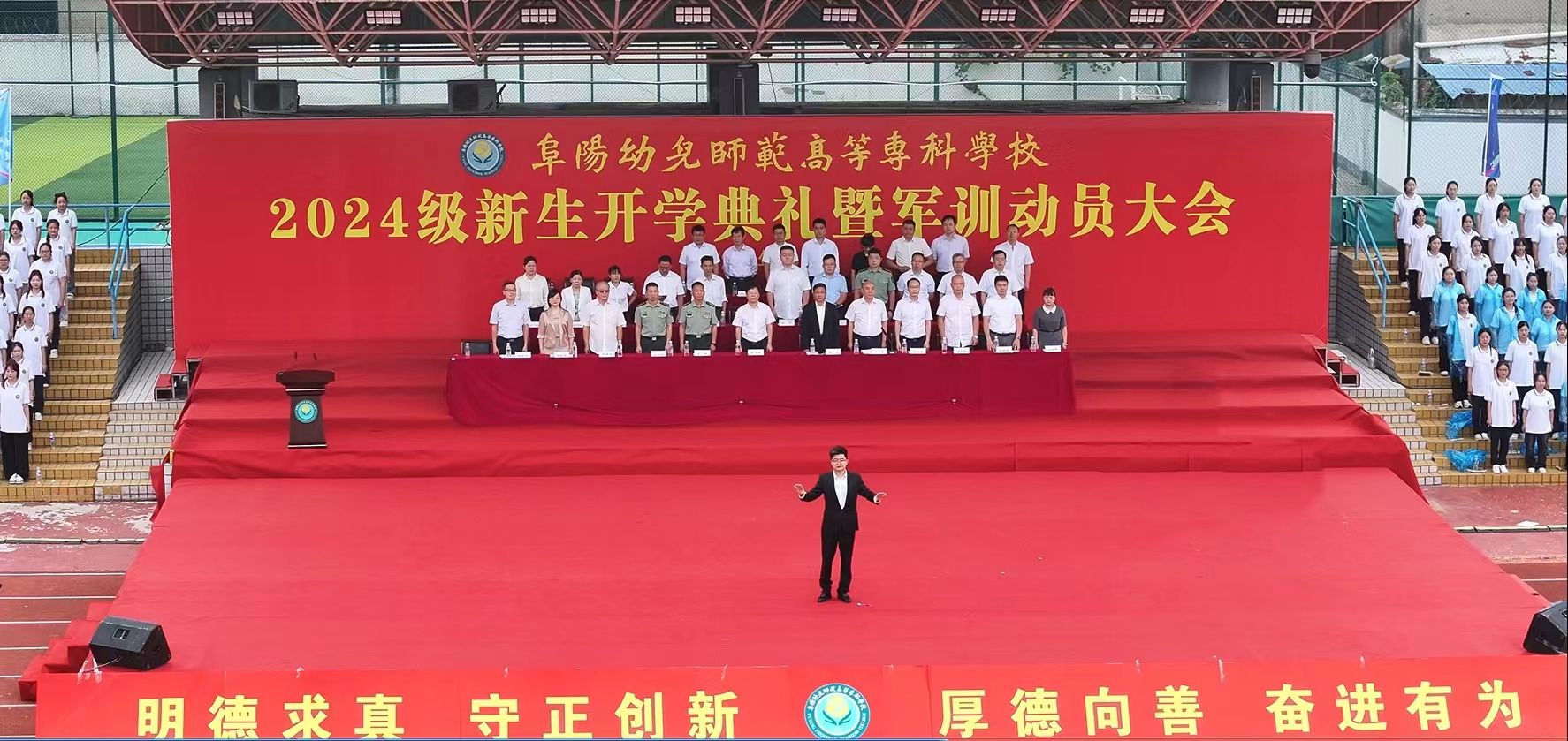 青春绽放,启航梦想。9月11日上午,我校2024级新生开学典礼暨军训动员大会在学校田径场举行,全体新生齐聚于此,共同开启人生逐梦新篇章。校领导董志诚、汤志、于华献、陈绪龙、许宗志、刘海涛、徐常恺,阜阳市军分区战建处处长王勇、市颍州区人武部部长吕向阳,各学院、各部门党政负责人,各学院教师、学生代表出席典礼,杰出校友代表、校企合作方代表应邀参加。