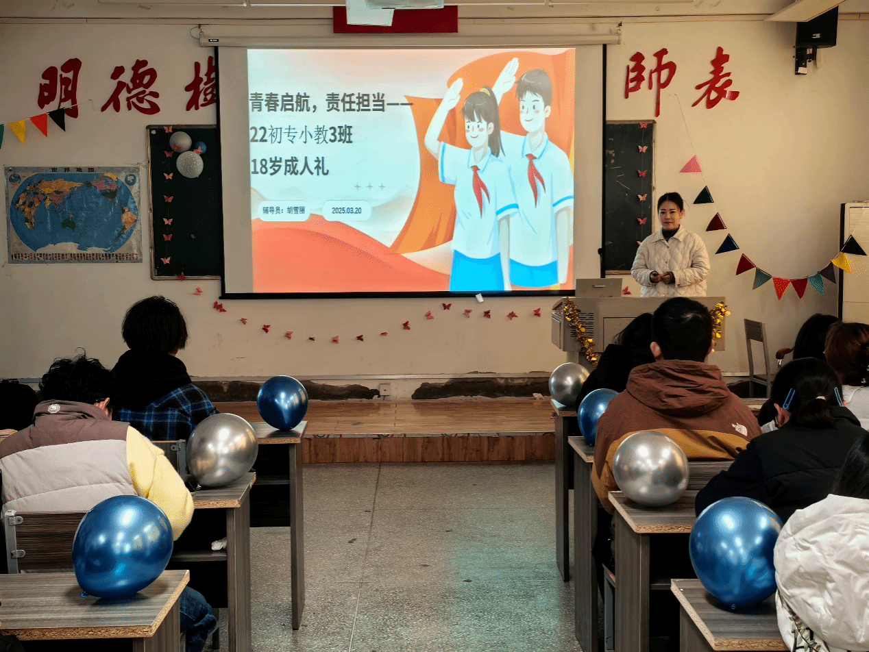 3月20日上午,小学教育学院22初专小教3班在文津楼202教室举行“青春起航,责任担当”18岁成人礼主题班会公开课。班会由辅导员胡雪丽老师召开,学生处领导及各学院辅导员代表到场观摩。