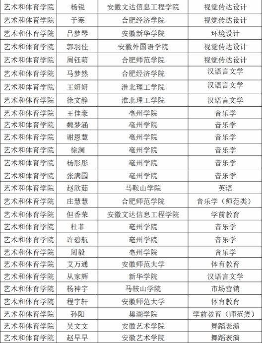 近日,安徽省2025年专升本考试录取结果揭晓,艺术和体育学院多名学子取得优异成绩,全院96名报考学生中,共有60名学生成功被安徽师范大学、安徽艺术学院、安徽外国语学院、合肥师范学院等本科院校录取,录取率达62.5%。专升本录取人数较2024年增长26.82%,再创佳绩。