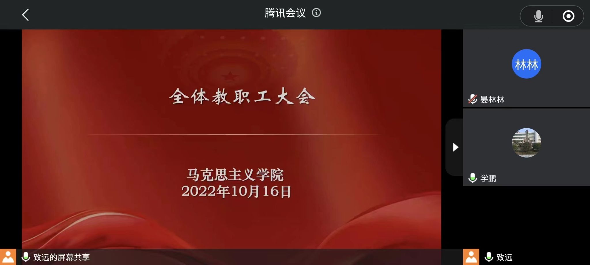 10月16日上午,马克思主义学院召开线上全体教职工大会,会议由马克思主义学院党支部书记、院长何丽娜主持,全体教师参加会议。