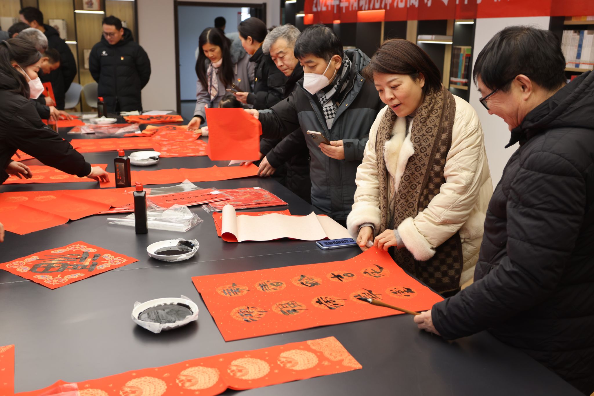 妙笔生花送祝福,挥毫泼墨迎新春。1月22日下午,我校"迎新春 送春联"活动在图书馆三楼书画活动室举办,活动邀请了十余名书法老师和书法爱好者为大家写春联。校党委书记董志诚到场指导,并为大家送上新年祝福。