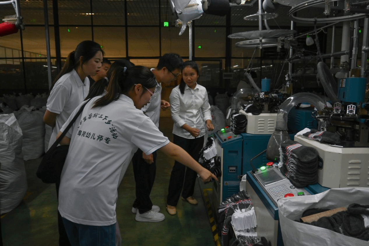 袜子“小车间”成就脱贫“大舞台” “梦想学院”支教团队赴会龙镇袜业产业园参观学习