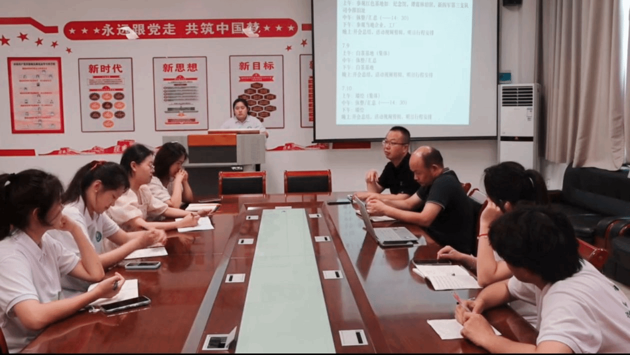 会上,2023级应用英语班的“烽火青春”暑期社会实践团队负责人陈洁同学汇报了本次赴芜湖市繁昌区孙村镇中分村暑期实践活动的前期准备工作,包括具体的行程安排、团队分工明细,以及团队的制度。