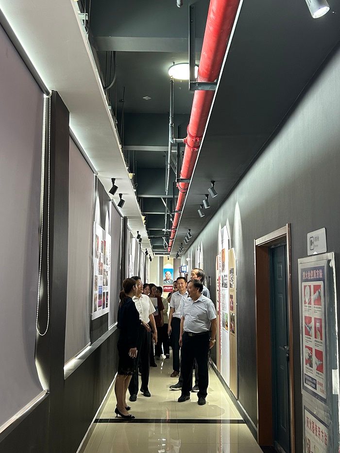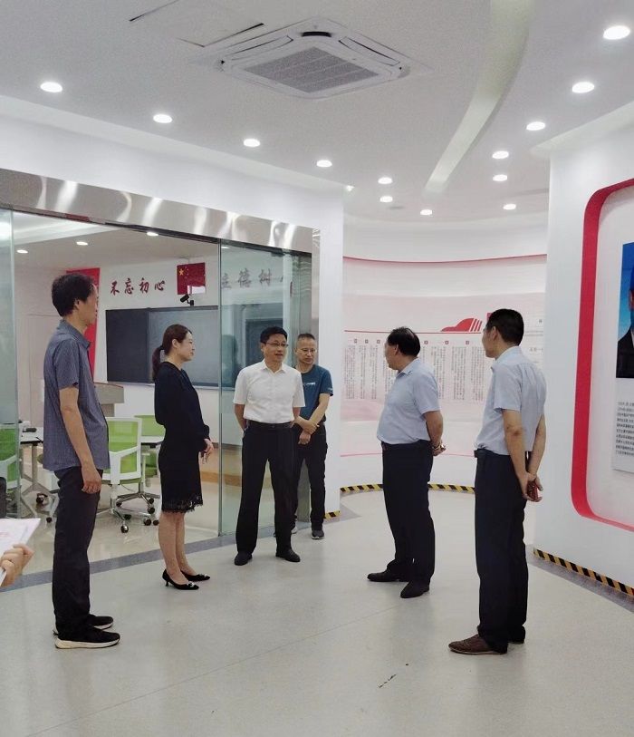 马克思主义学院党支部书记、院长何丽娜作了简要讲解并介绍了我校思政课教学改革情况。汪芳启一行参观了虚拟仿真思政课体验中心百年党史文化长廊、影音学习角、印说党史、思源读书角、新时代传习室、互动体验角、红色影院、中国共产党人精神谱系及智慧教室等模块。