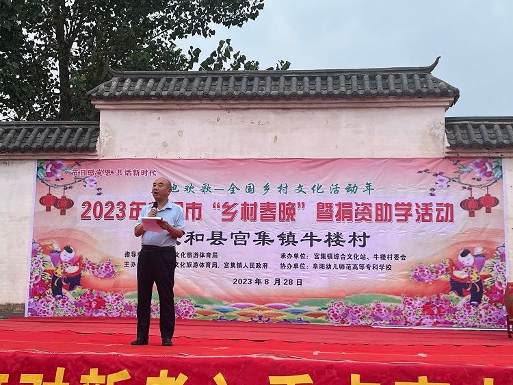 8月28日下午,我校在太和县牛楼村举行捐资助学活动,校党委副书记于华献出席并讲话,校党委委员、办公室(宣传部)主任(部长)徐常恺及组织人事处、团委、艺体学院负责同志参加活动。