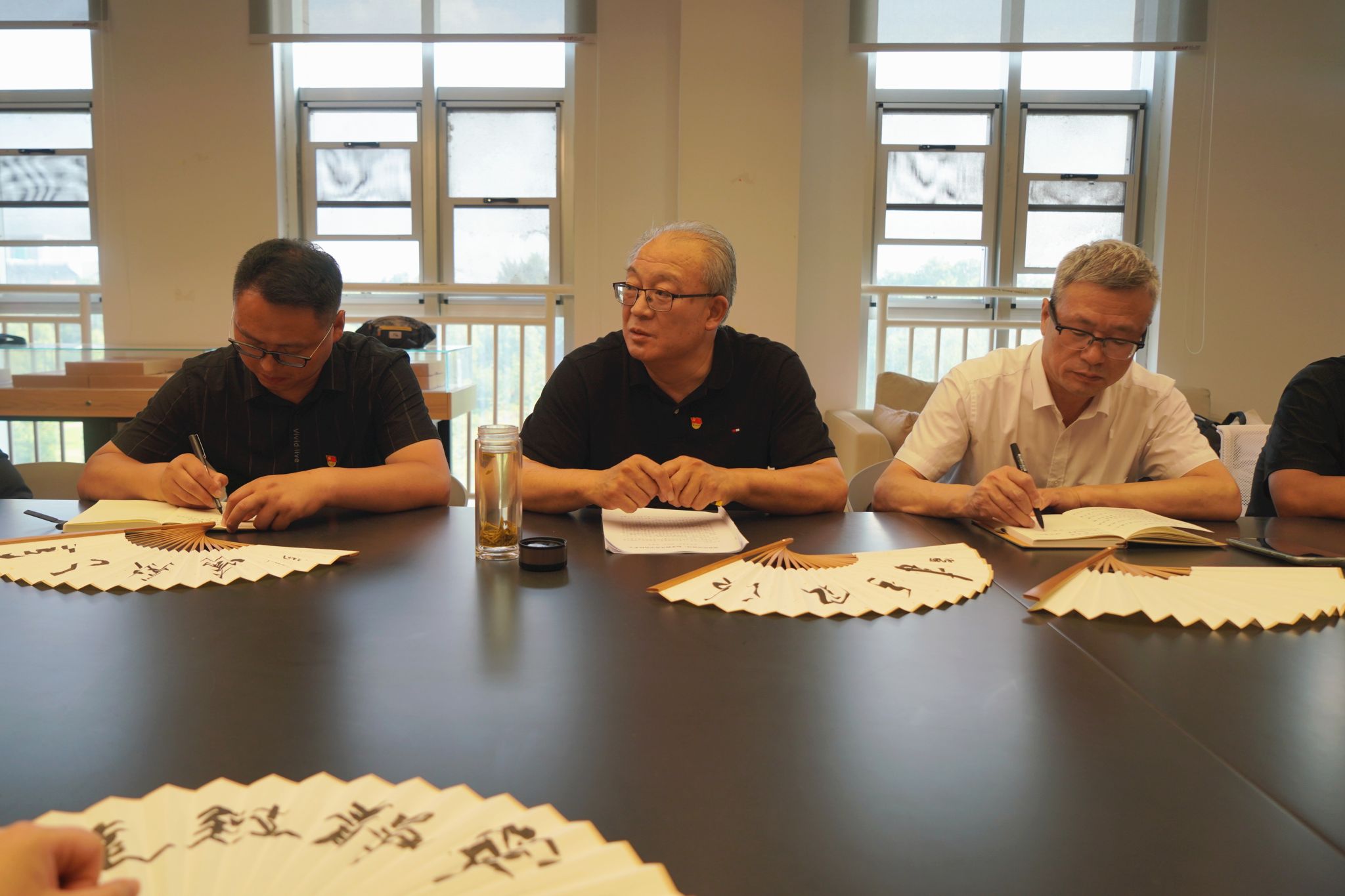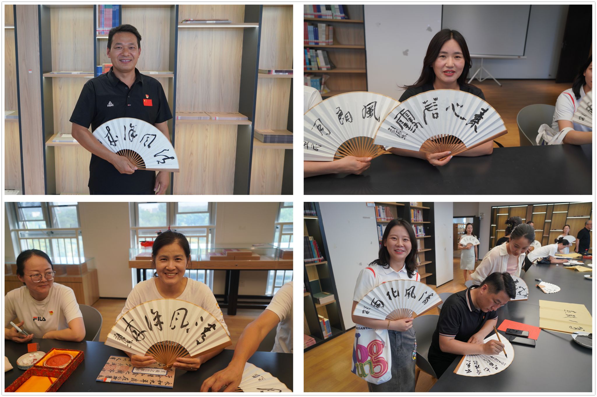 活动现场,党员们以 “廉政标语”“习语用典” 为内容,在素面折扇上进行廉政书法创作。学院特别邀请书法专业教师现场指导,在挥毫泼墨间体悟 “清正在德,廉洁在志” 的深刻内涵。“清正廉明”“立德树人,身正为范” 等作品,既是党员们对廉洁初心的叩问,也是对教育使命的庄严承诺。