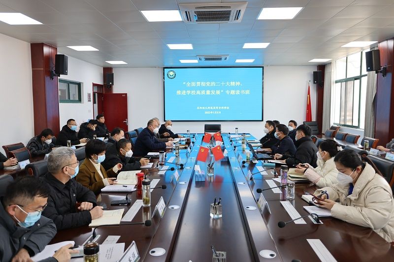 金杰强调,通过举办读书班,学校领导干部要带头深入学习中办、国办《关于深化现代职业教育体系建设改革的意见》等高等职业教育政策法规。要“凝共识、聚合力”,加强政策学习研究,解放思想,真抓实干,推动发展。要“强内涵、抓关键”,坚持立德树人,深化“三全育人”,持续抓好双高创建、教学诊改、师生技能大,2023年围绕岳家湖校区建设、幼教集团发展、内涵建设三项重点任务,力求取得突破性进展。要“提质效、勇担当”,向管理要效益,强化教职工队伍建设,强化量化管理考核,改革绩效分配,以实绩论待遇,推行干部能力提升、增强本领,真正做到能者上、庸者下,提高办学治校水平。