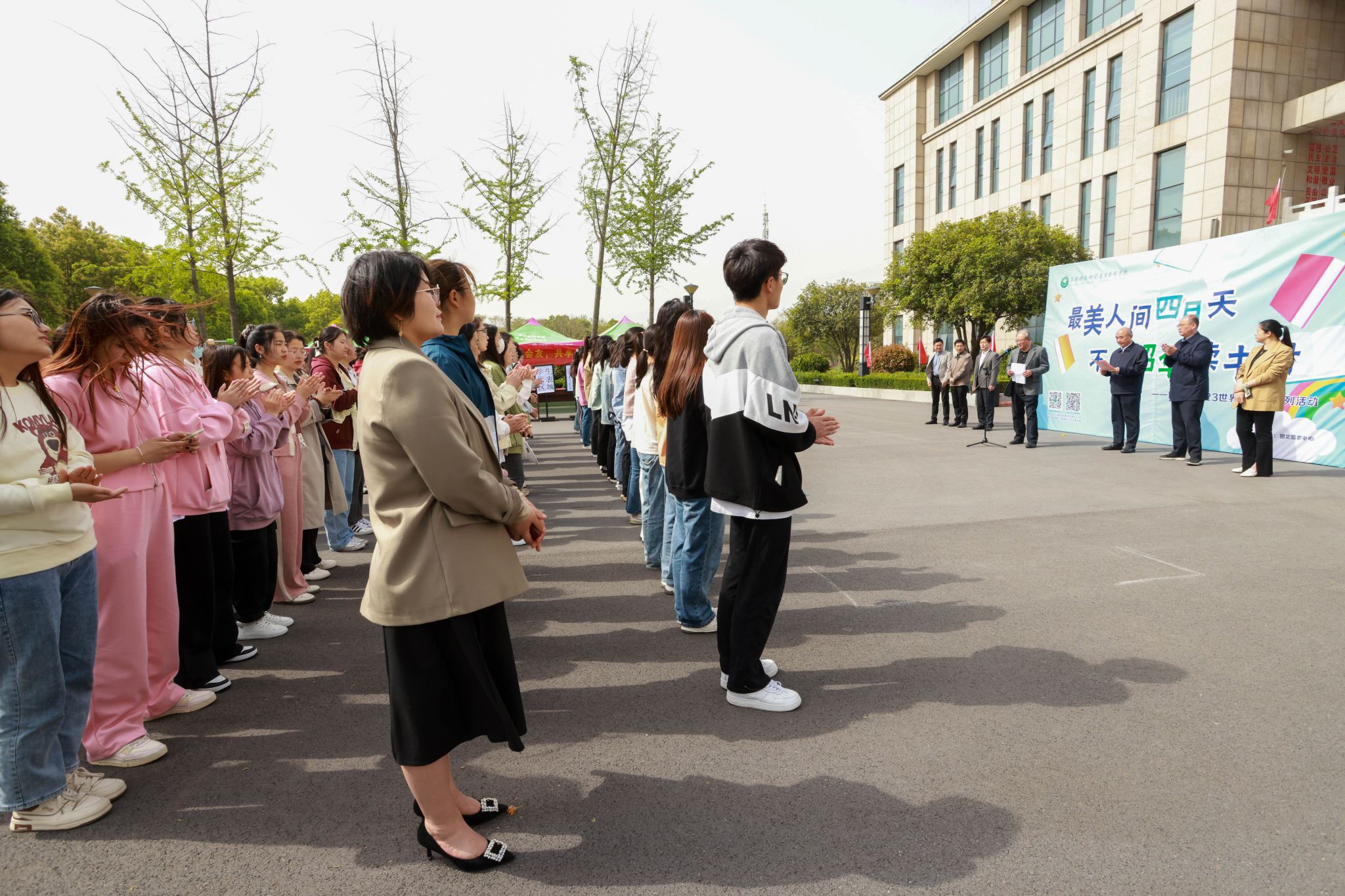 4月11日上午,我校在图书馆一楼广场举行了2023年“最美人间四月天,不负韶华读书时”世界读书日系列活动启动仪式。出席活动仪式的有校党委副书记于华献,校党委委员、副校长陈绪龙,校党委委员、办公室(宣传部)主任(部长)徐常恺及各学院主要负责人、教师代表、学生代表等,仪式由陈绪龙副校长主持。