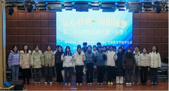 为推进学院心理健康教育,提升大学生心理健康意识,引领学生关注自我成长,塑造良好心理品质,12月6日下午,学前教育学院在校学术报告厅内举办了第二届校园心理情景剧初赛,共15支队伍参加比赛。经过激烈的角逐,3支队伍推荐参加校级决赛。