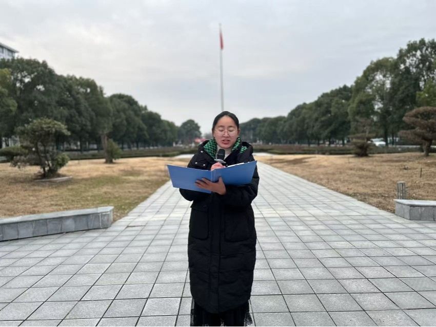 伴随着雄壮激昂的《义勇军进行曲》,鲜艳的五星红旗在晨光中冉冉升起,迎风招展。全体师生凝神肃立,行注目礼。学生代表李晶晶作国旗下的演讲。她表示,坚定理想信念,我们要有清晰的教育目标和教育情怀,要求我们要不断学习和提升自己,更需要我们有勇气和毅力去实现它。作为新时代青年,要有“咬定青山不放松”的韧劲,不畏艰难,不惧失败,坚定前进信心,努力成为堪当民族复兴重任的时代新人。