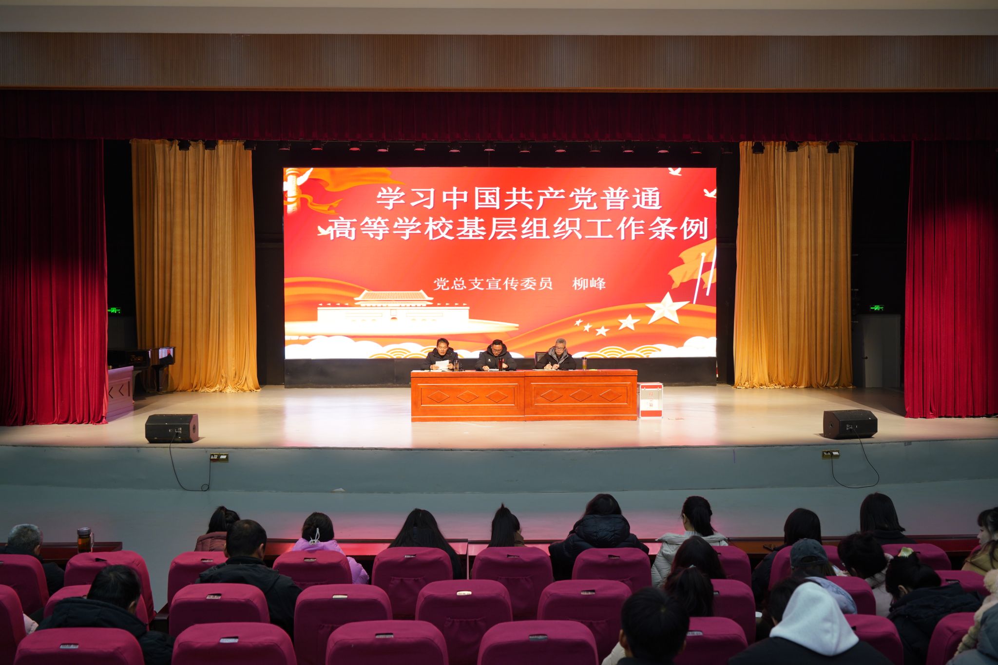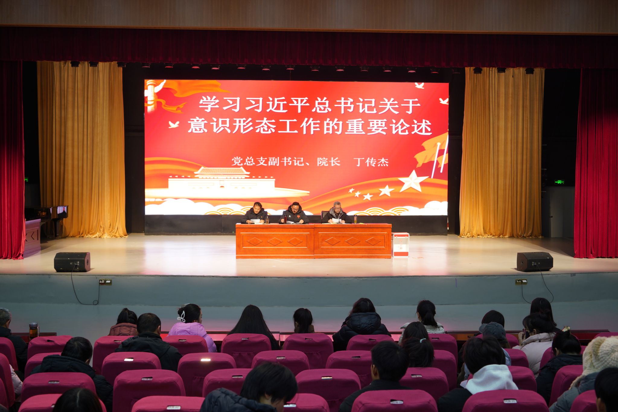 会前,由党总支副书记、院长丁传杰带领学习习近平总书记关于意识形态工作的重要论述、党总支宣传委员柳峰带领学习《中国共产党普通高等学校基层组织工作条例》部分内容。