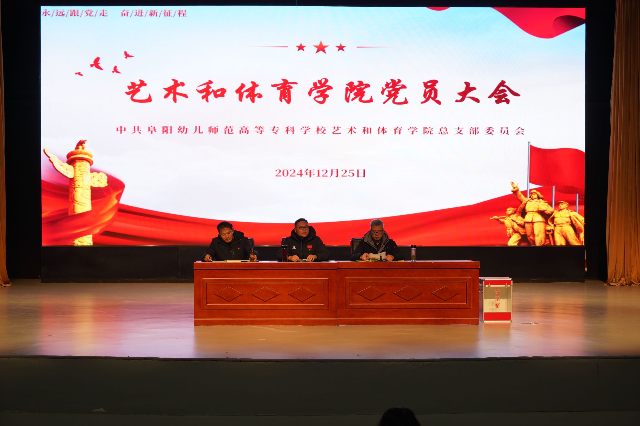 12月25日,艺术和体育学院党员大会在德馨楼演播大厅举行。大会补选了学院党总支部委员会委员。会议由学院党总支负责人范云峰主持,全体党员参加会议,入党积极分子、学生代表列席会议。