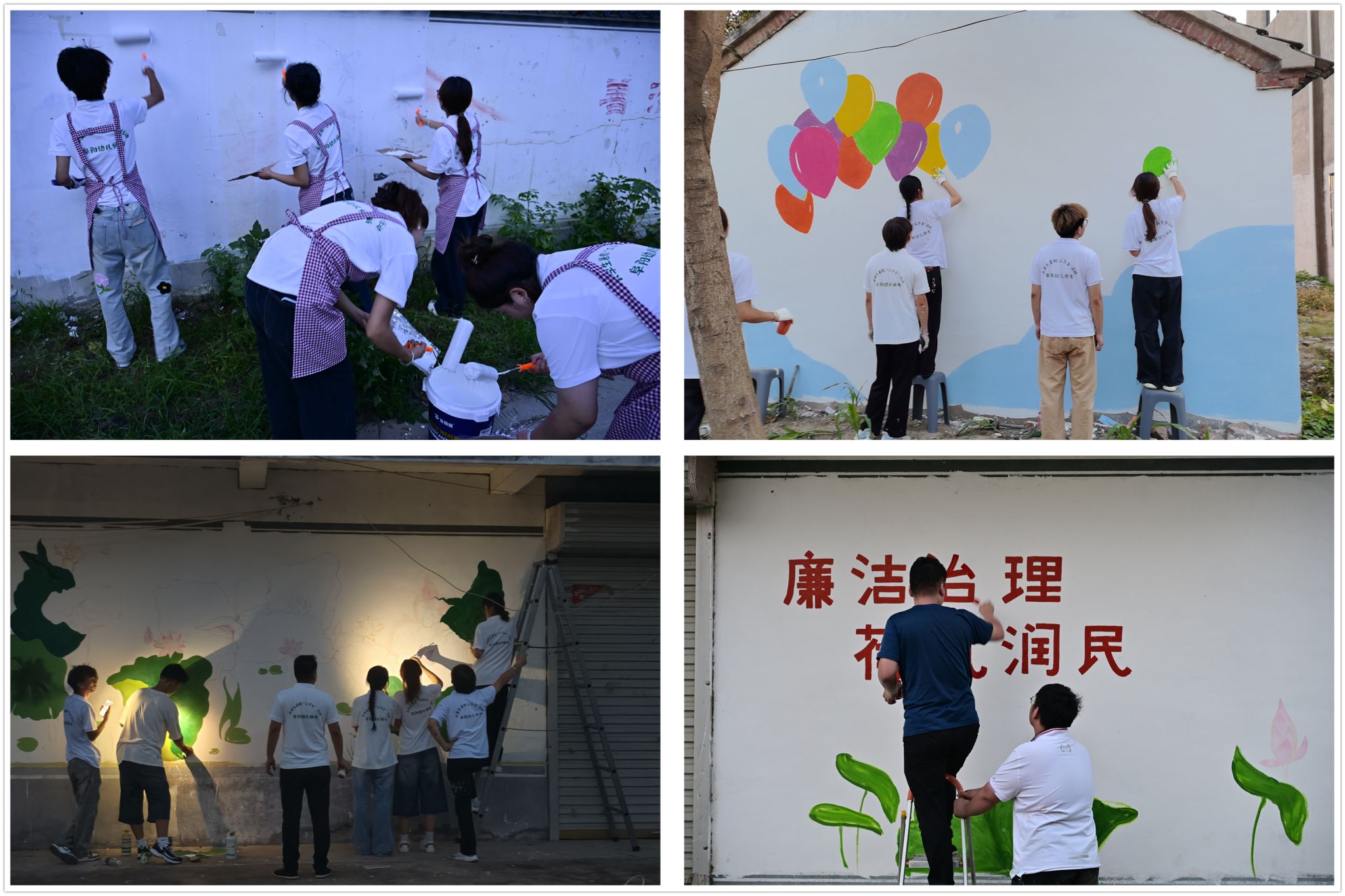 炙暑躬行,“星光育美” 大学生社会实践团队在周振国、王清晨和李嘉琪老师的带领下,带着专业热忱扎根大谢庄。8 幅文化墙绘在队员们手中渐次铺展,从勾勒农耕场景的晨曦微露,到描绘产业振兴的暮色炊烟,笔触间既有艺术专业的精准表达,更有对乡村肌理的深刻洞察。当孩子们追着墙画上的稻穗图案奔跑,老人抚摸着绘有传统手工艺的墙面热泪盈眶时,艺术已悄然成为连接校园与乡土的精神纽带 —— 这正是学院“让美扎根生活” 教学理念的生动实践。