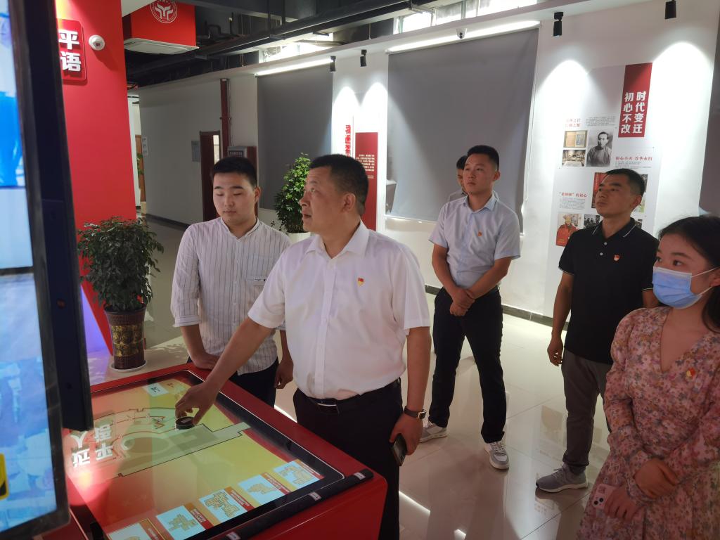 李付明一行先后参观了红色影院、“印说党史”师生篆刻展、体验了AR魔屏、初心问答学习区 ,了解了我校党史学习教育情况。学习了“王家坝抗洪救援”“红军爬雪山”“平型关大捷”等虚拟仿真思政课程。