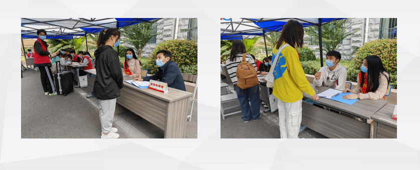 报到现场,辅导员与新生亲切交流,询问新生来自于哪里、对大学生活有什么期待等,并向他们介绍了学校各方面情况,叮嘱新生要做好疫情防控,尽快融入新环境,适应大学生活,及时做好规划,尽早确立学习目标和职业目标,成为一名优秀的大学生。