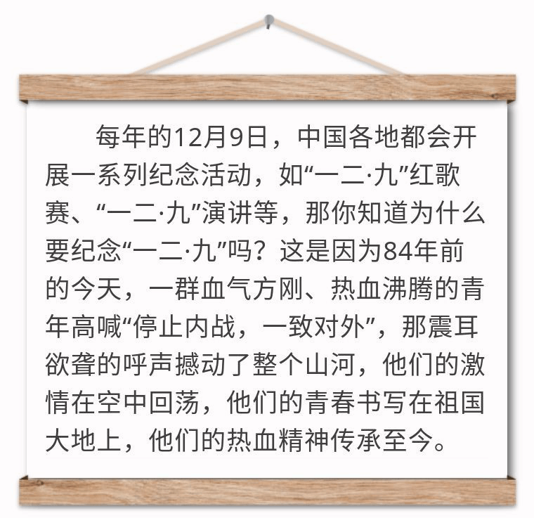 一二·九运动的道路就是党领导青年,青年跟党走的道路。也正是沿着这条道路,坚定追随党的步伐,一批批青年学生越过重重关卡奔向革命圣地延安,为中国革命贡献青春和热血。今天,依然是沿着这条道路,依然是无数青年志士,在党的领导下投身社会主义建设大潮,顽强拼搏、开拓创新、不懈奋斗,实现了中国社会经济飞速发展,取得了举世瞩目的成绩。