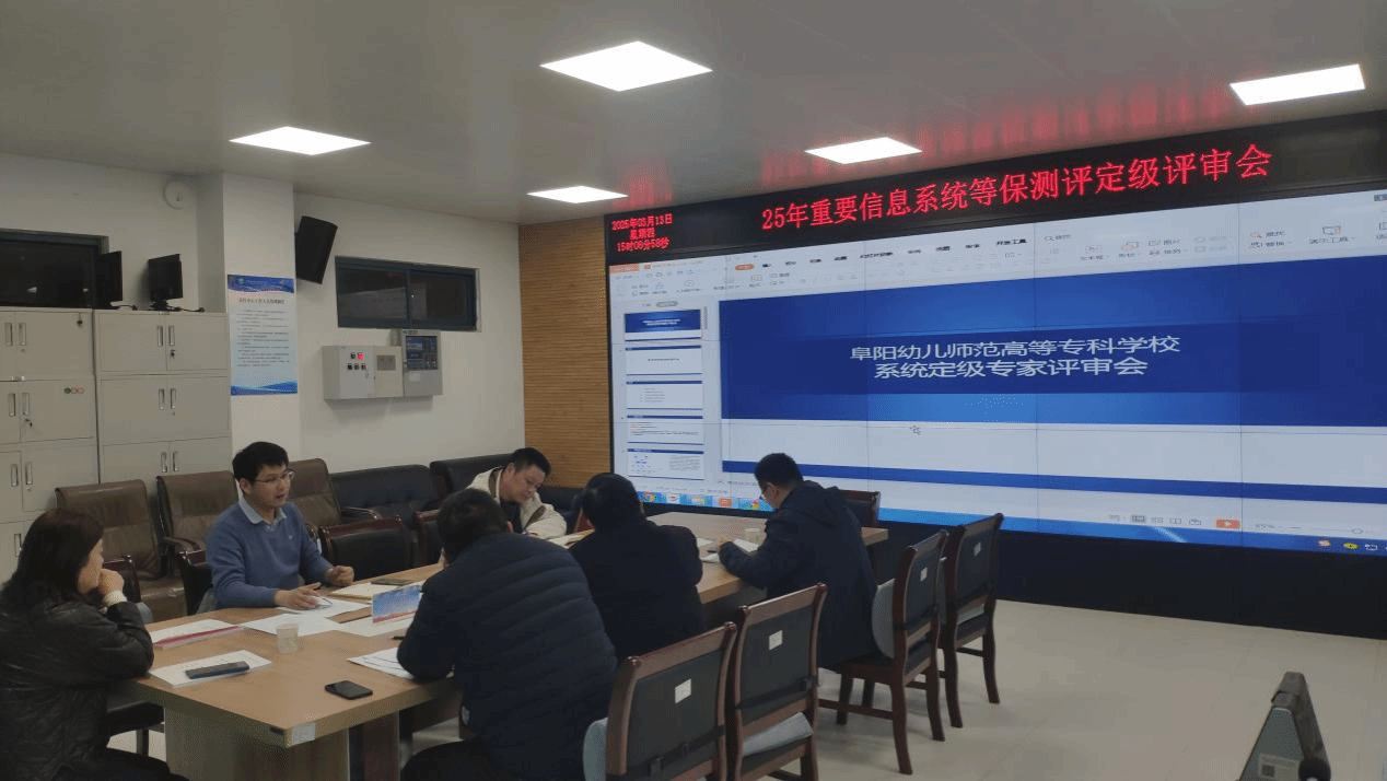 3月13日下午根据学校年度工作安排,图文信息中心、监察室等部门组织学校重要信息系统等级保护定级评审工作,会议邀请阜阳市网络安全相关高校信息化专家进行指导评审。会议上图文信息中心对学校2025年重要信息系统基本信息进行了介绍,依据国家网络安全等级保护政策和标准,与会专家对拟定级信息系统进行了复核,定级符合相关要求。