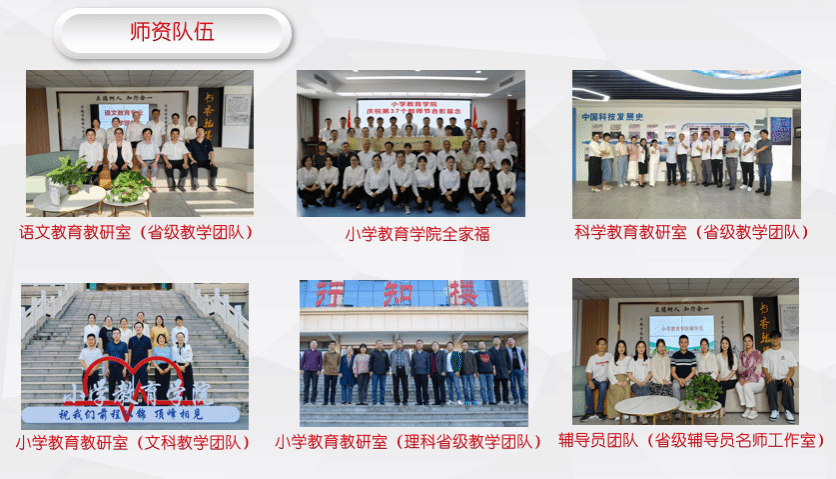 学院现有专兼任教师63人,其中高级职称26人(教授4人),研究生学历教师37人(博士生3人),双师型教师36人;全国优秀教师1人,省级教学名师、新秀6人,省级专业带头人教坛新星2人,校级师德标兵、教学名师、专业带头人共16人;学院重视团队建设,小学教育、小学语文教育、小学科学教育3个专业教学团队均为省级高水平教学团队;建有省级辅导员名师工作室(养成教育工作室),突出名师引领、组团发展,努力打造一支结构合理,数量适中,具有较强创新意识和开拓精神的双师型教学团队。
