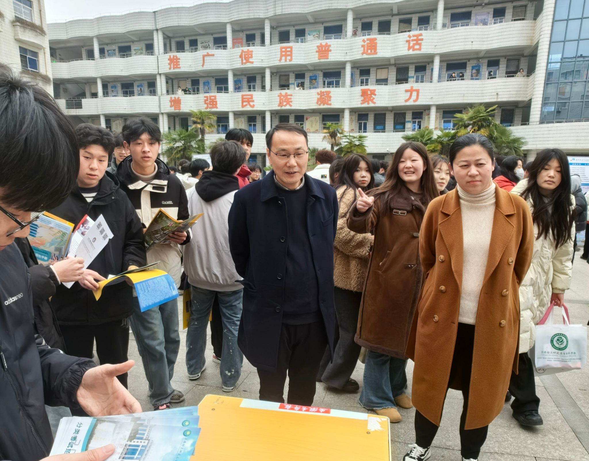 许宗志一行实地查看招生宣传工作现场,听取学校分类考试招生和工作组工作开展情况,与现场广大师生和工作组成员深入交流,了解当前考生关切诉求,探讨分类考试考情和招生形势。